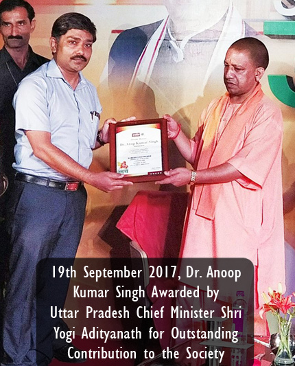 19th September 2017, Dr. Anoop Kumar Singh Awarded by Uttar Pradesh Chief Minister Shri Yogi Adityanath for Outstanding Contribution to the Society.